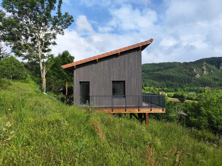 Espaliou espaliou construction d’une maisonen ossature bois sur pilotis lieu Vorey (43)livraison 2024superficie 50 m2maîtrise d’ouvrage privé intervention architecture spécificité pilotis bois mission complètecoût 130 000 euros